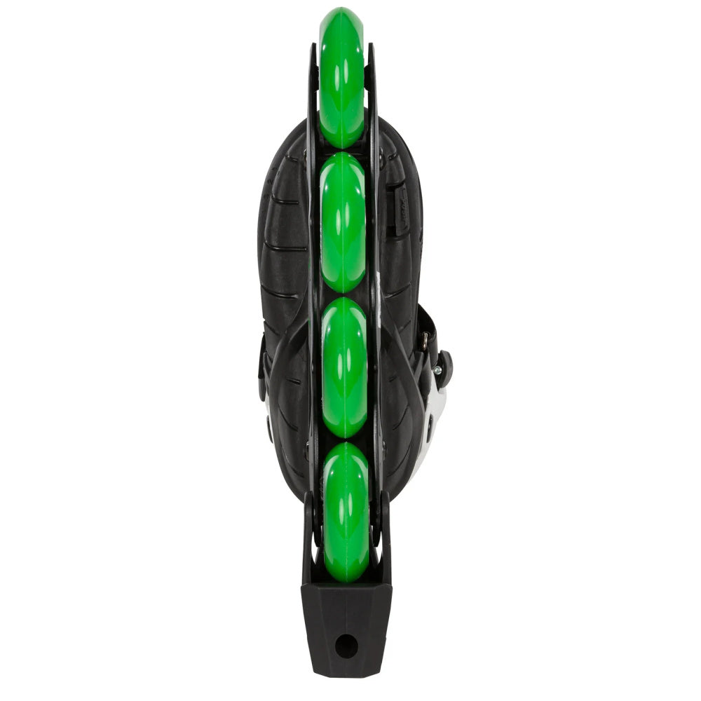 The traditional 4-wheel set-up on the Phuzion Universe 4W Green is fast while giving your child a stable base to learn the basics of inline skating.